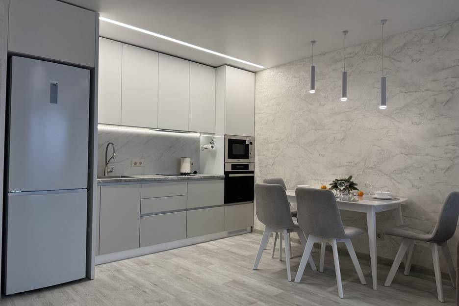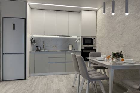 Kваpтира с отличным и современным ремонтом, где имеется ВСЕ САМОЕ НЕОБХОДИМОЕ ! А именно: просторная двухспальная кровать, шкаф-купе, большой угловой диван, обеденная зона, состоящая из прямоугольного раздвижного стола и четырех комфортных стульев, удобный, функциональный санузел. Это именно то место, где вы сможете уединиться, отдохнуть и набраться сил. В квартире могут разместиться 4 гостя. Мы предоставляем постельное белье, полотенце, душевые принадлежности, Wi-fi. Кроме того, для вашего удобства имеется стиральная машинка-автомат, порошок, для белого и цветного, утюг, гладильная доска и сушилка. В кухонной зоне есть все необходимое для приготовления, приема пищи и хранения.
