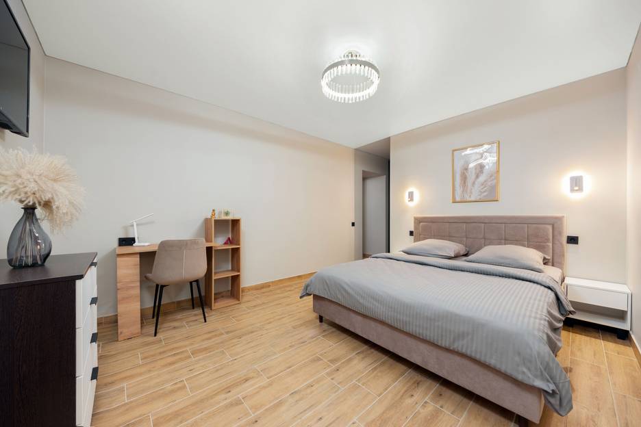 - Оборудована всем необходимым: новая большая кровать, большой диван, на котором с комфортом могут разместиться два человека