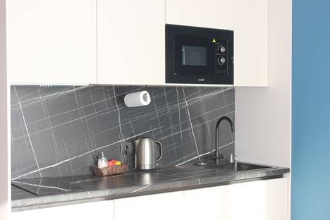 - полностью оборудованная кухня: индукционная плита, холодильник, СВЧ, посудомоечная машина (предоставляются таблетки для ПММ, губка для мытья посуды, полотенце), фильтр питьевой воды Аквафор 3 степени очистки, посуда для приготовления пищи, столовые приборы на три персоны, чай, сахар, специи