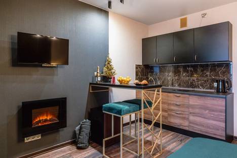 Изысканная изюминка этой студии - электрический камин, расположенный на стене напротив кровати. Он придаёт волшебный шарм и уютному вечеру наедине с собой, и романтическому свиданию, и беседе с друзьями за бокалом вина. Бокалы Вы найдете во втором верхнем шкафчике на кухне. Прекрасный выбор вина есть в магазине на цокольном этаже.