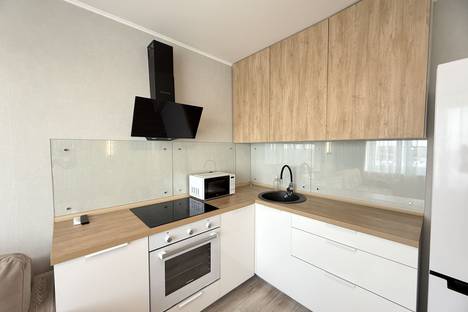 ✅ Современная бытовая техника: варочная панель, двухкамерный холодильник, вытяжка, электрочайник, СВЧ, фен, утюг, стиральная машина.