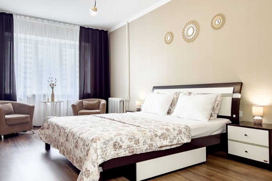 - Двуспальная кровать (отдельная спальня) + раскладной диван (в гостиной) - размещение до 4 гостей