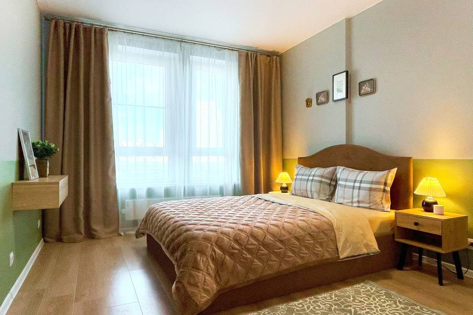Отличная квартира, все чисто, белье хорошее, новая мебель, интересный интерьер. Очень понравилась большая кухня, нас было много, но мы не толкались в ней. Заселение удобное, бесконтактное, в любое время. Рядом много магазинов. Метро близко. Нам очень понравилось, рекомендую.
