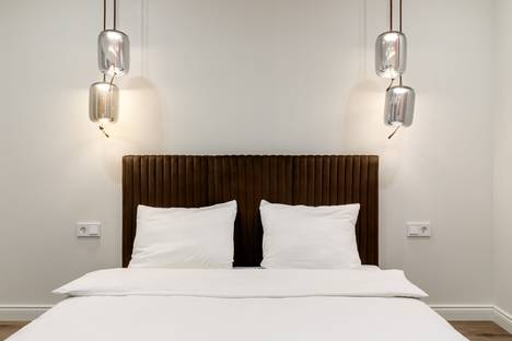 Спальня со стильными светильниками и удобной кроватью