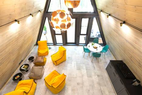 Домик 2 (A-Frame с купелью) 60 м2, из натурального дерева, двухэтажный включает в себя: