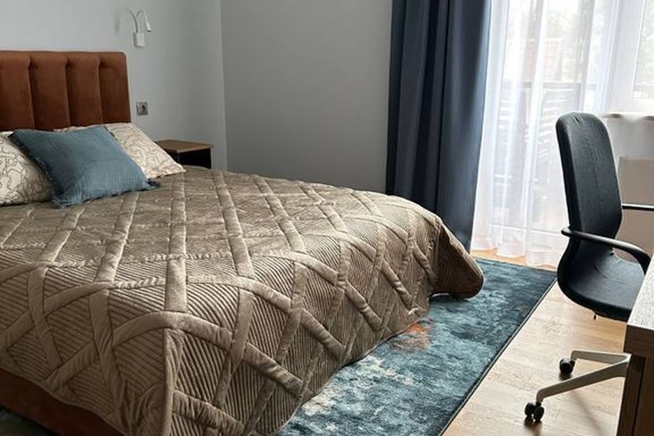 Квартира расположена в частном доме на 2 и 3 этажах (2 уровня) с отдельным входом. До пляжа 10 минут пешком. Место очень уютное, тихое, но в центре города. Возможно пользование сауной (минус 1 этаж), аренда велосипедов. Собственная терраса с мебелью. Имеется зона барбекю (во дворе).