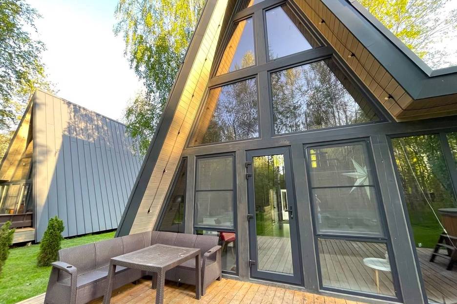 Домик 7 (A-Frame с купелью и баней) 100 м2, из натурального дерева, двухэтажный включает в себя: