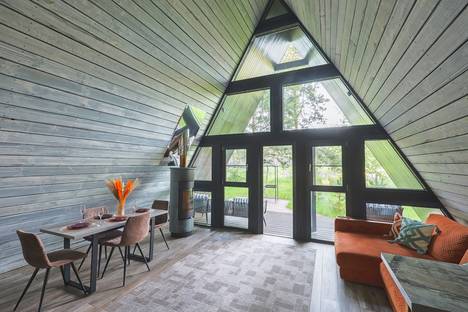 Домик 15 (A-Frame с камином, кондиционером и террасой) 77 м2, из натурального дерева, двухэтажный включает в себя: