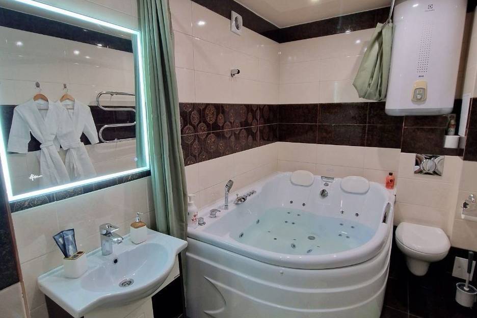 ⚠️ Настоящая изюминка квартиры - большая ванная комната, где установлена роскошная джакузи-бассейн размером 1,8м × 1,3м и объемом 600 литров для полноценного отдыха после долгого дня