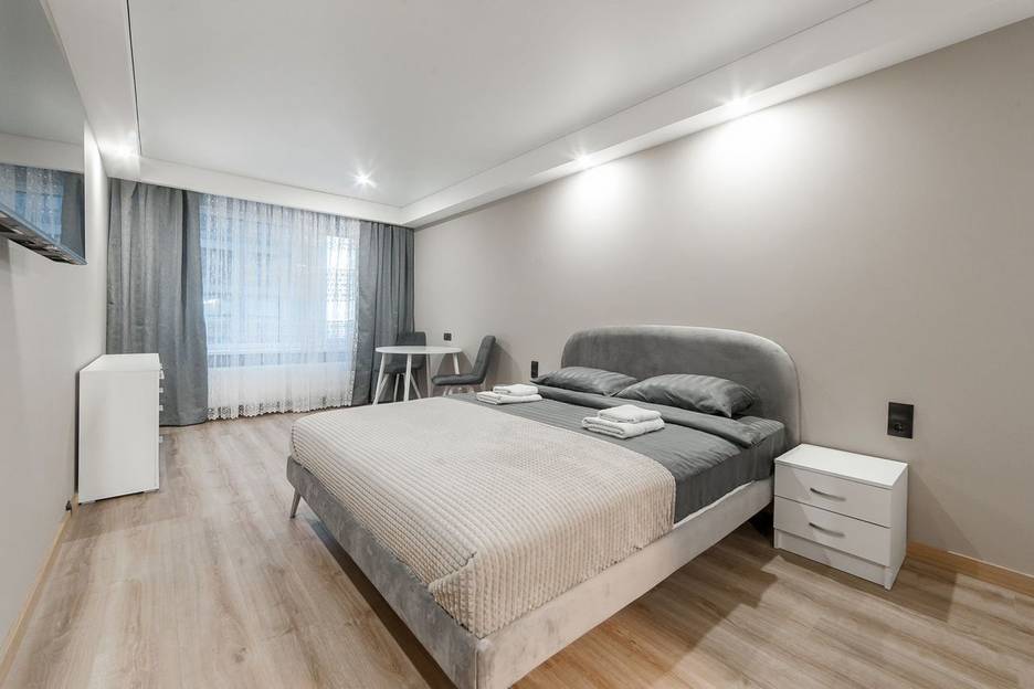 Апартаменты с новым дизайнерским ремонтом! Оборудованы всем необходимым для комфортного проживания: удобная двуспальная кровать с ортопедическим матрасом, свежее постельное белье отельного качества, полотенца, телевизор, стиральная машина, варочная панель, холодильник, микроволновая печь, электрочайник, фен, утюг, посуда, столовые принадлежности, сушилка для белья, гладильная доска, WI-FI, ТВ.