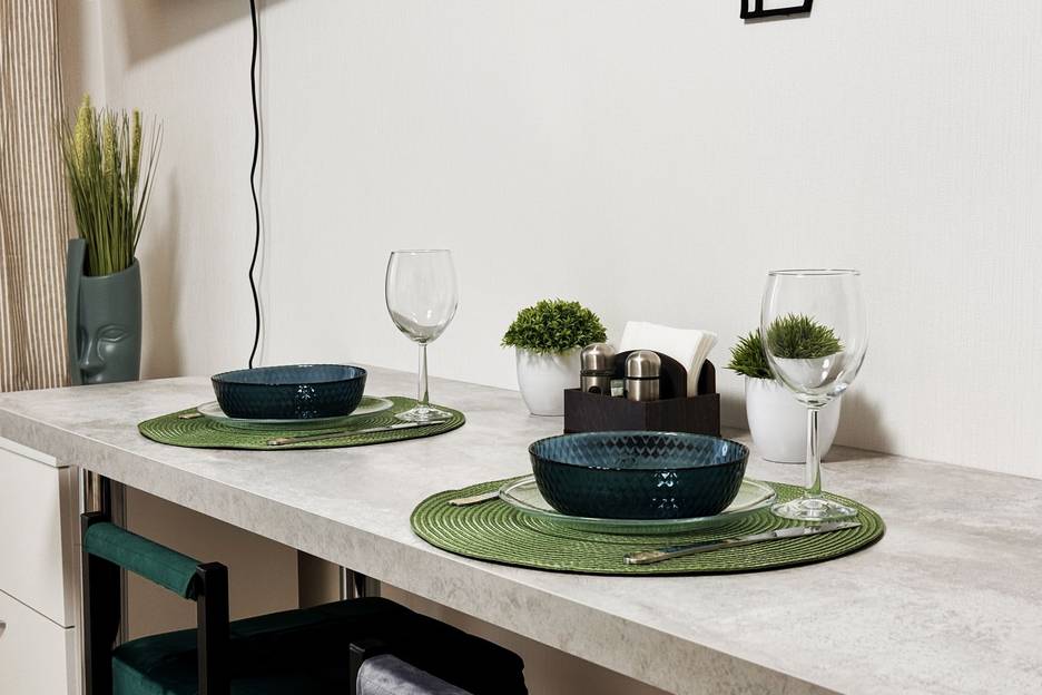 На кухне имеется вся необходимая посуда, столовые приборы.