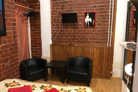 Уютный, комфортный номер с двухспальной кроватью. Телевизор, кожаный диван, кресло,обеденная зона, большое зеркало. Прикроватная тумбочка с настольной лампой.Комнаты находиться на 4 этаже дореволюционного здания ( лифт ). Мы предлагаем услуги стандартного экономного проживания. В общей доступности имеется холодильник, микроволновая печь" плиты нет",посуда, чай сахар бесплатно, пурифайер с кипятком и чистой холодной водой ( стоят 4 фильтра), гладильные принадлежности и фены, а также бесплатный доступ в интернет.