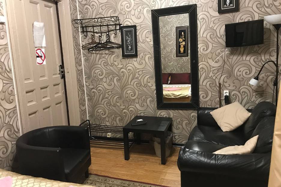 Уютный, комфортный номер с двухспальной кроватью. Телевизор, кожаный диван, кресло,обеденная зона, большое зеркало. Прикроватная тумбочка с настольной лампой.Комнаты находиться на 4 этаже дореволюционного здания ( лифт ). Мы предлагаем услуги стандартного экономного проживания. В общей доступности имеется холодильник, микроволновая печь" плиты нет",посуда, чай сахар бесплатно, пурифайер с кипятком и чистой холодной водой ( стоят 4 фильтра), гладильные принадлежности и фены, а также бесплатный доступ в интернет.