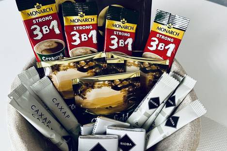 - Бесплатно в качестве комплимента, предоставляется чай/кофе/горячий шоколад , сахар, молочный шоколад.