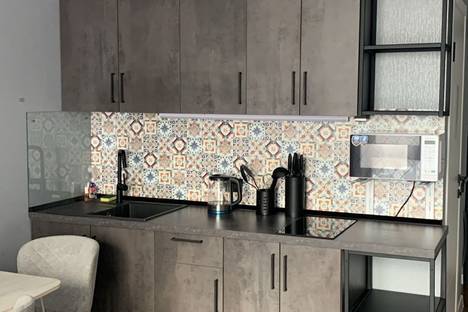 Квартира укомплектована кондиционером, вытяжкой, плитой, стиральной машиной, чайником, телевизором, холодильником, феном, утюгом и микроволновкой.