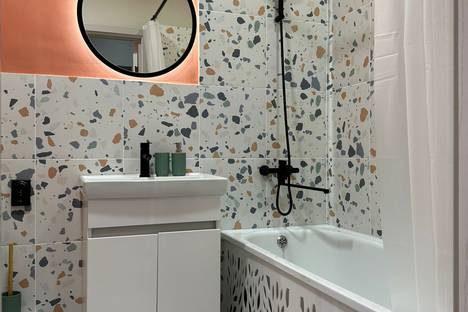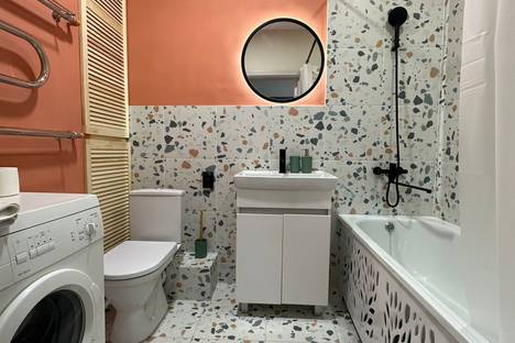 В ванной комнате современная сантехника и стильный интерьер. Из окон открывается вид во двор, что обеспечивает тишину и спокойствие.