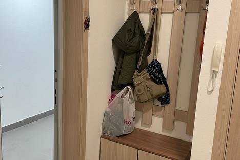 В прихожей есть вешалка для верхней одежды, шкафчик для обуви, пуфик, зеркало, тумбочка для шарфов и перчаток.