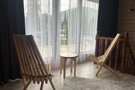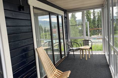 На первом этаже расположена спальня с панорамными окнами и выходом на веранду. Свой утренний кофе Вы будете пить любуясь прекрасным видом на гору Зеленая