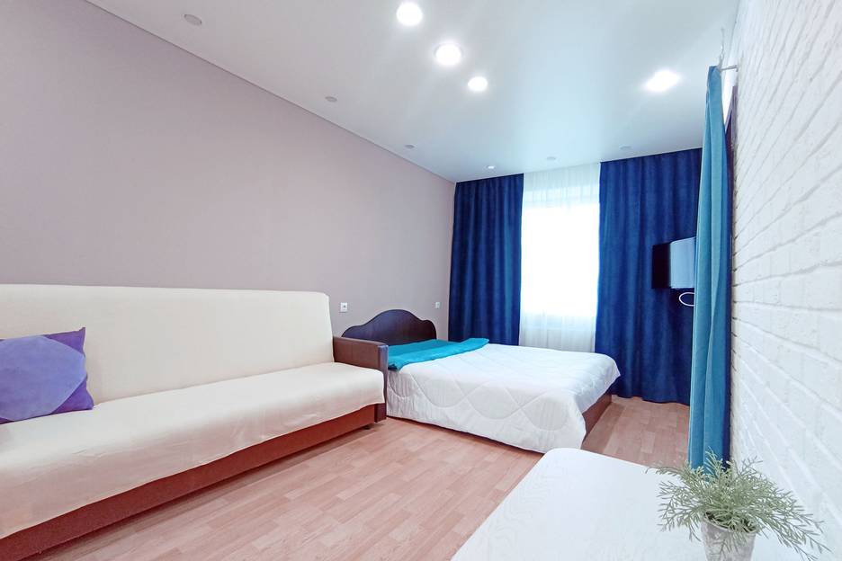 Имеется двухспальная кровать и диван раскладной, можно расположиться семьёй 4 человека 2+2 либо командировка 1+1.