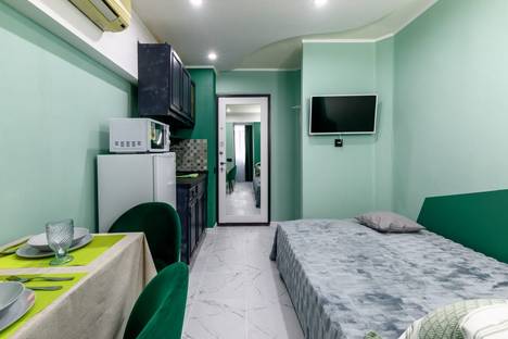 Добро пожаловать в уютную студию рядом с аквапарком и ТЦ «Парк»! Идеально подходит для одного гостя или пары. Спальные места для 2х человек – двуспальная кровать. Бесконтактное заселение 24/7.