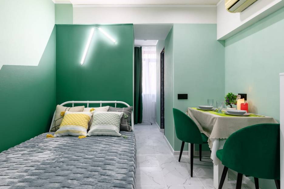 Добро пожаловать в уютную студию рядом с аквапарком и ТЦ «Парк»! Идеально подходит для одного гостя или пары. Спальные места для 2х человек – двуспальная кровать. Бесконтактное заселение 24/7.