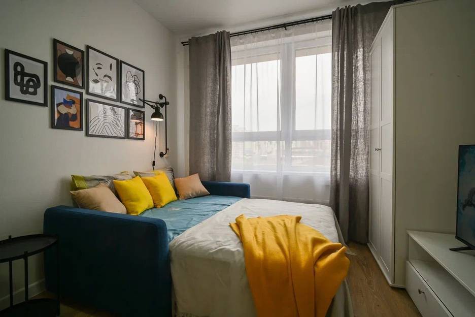 В квартире имеется двухспальный диван с матрасом, ЖК телевизор со смарт тв, кондиционер. Обеденная зона. Кухонный гарнитур со всей бытовой техникой, включая посудомоечную машину. Так же имеется всё необходимое для отдыха и работы: безлимитный интернет, Wi-Fi, холодильник, стиральная машина, электрический чайник, СВЧ, фен, утюг, гладильная доска, посуда.