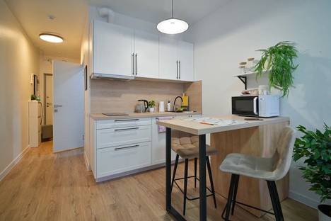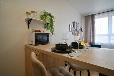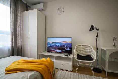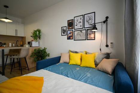 Прекрасная студия с дизайнерским ремонтом идеально подойдёт для отдыха и командировки. Абсолютно всё новое к Вашим услугам- ремонт, мебель, техника, посуда. Кондиционер и посудомоечная машина!
