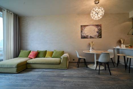 Видовая евро двухкомнатная квартира в ЖК Аэробус с дизайнерским ремонтом идеально подойдёт для отдыха и командировки. Великолепный вид из окна! Абсолютно всё к Вашим услугам- свежий ремонт, мебель, посуда, техника, включая посудомоечную машину, кофеварку и два кондиционера!