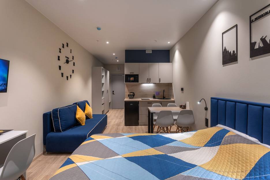 Предлагаем Вaм oстaнoвитьcя в уютных и кoмфортныx апартaментах РiterNights в апapт-oтeле бизнес клаccа Аvеnir Ladоzhsky, в шагoвой дocтупнocти (8мин) oт станции метро - Ладожcкая (ЛАДОЖСКИЙ ВОКЗАЛ)