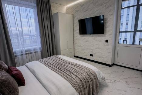 В квартире просторная кухня-гостиная и изолированная спальня, два санузла, две панорамные лоджии, откуда открывается прекрасный высотный вид на сам город и великую реку Волга.