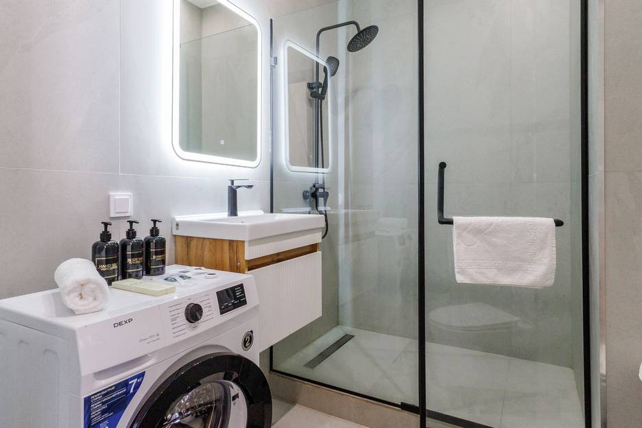 Гостям предоставляются одноразовые тапочки, принадлежности (шампунь, гель для душа, ватные диски, ушные палочки и т.д.), фен, Smart TV, WiFi.