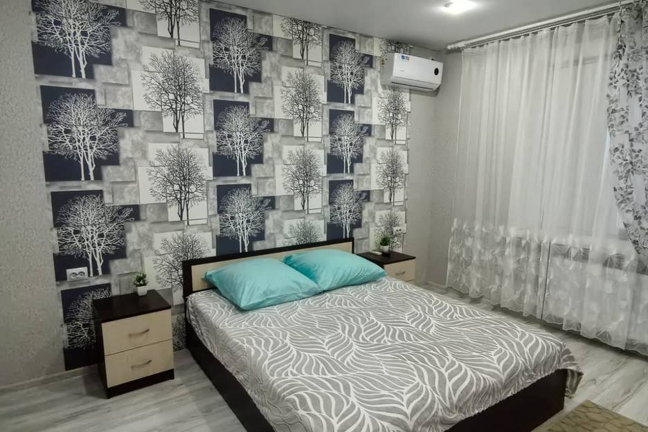 Квартира полностью меблирована (широкая двуспальная кровать с ортопедическим матрасом 220×200, кресло-кровать, кресло-пуф раскладной, шкаф, тумбочки, кухонная мебель, обеденный стол, стулья)
