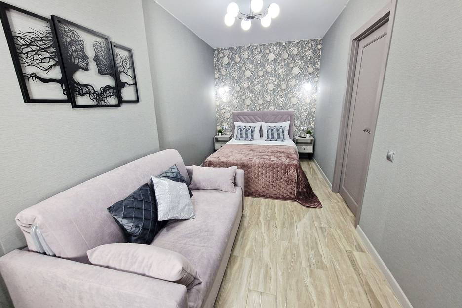 Представляем вашему вниманию комфортабельные двухкомнатные апартаменты площадью 40 м² в современном жилом комплексе. Квартира выполнена в современном стиле с использованием качественных материалов. Эргономичная планировка и продуманное зонирование создают атмосферу домашнего уюта. Количество комнат: 2 (изолированная спальня и просторная гостиная, совмещенная с кухонной зоной). Вместимость: до 6 человек (есть двуспальная кровать и раскладывающийся диван в спальне, а также раскладывающийся диван в гостиной).