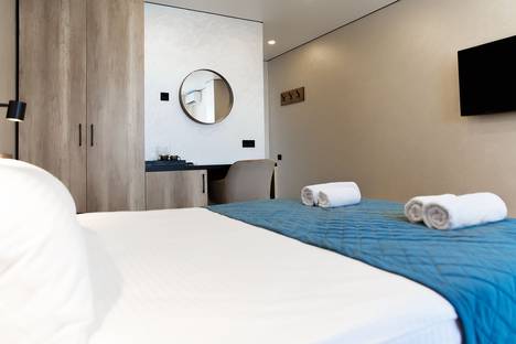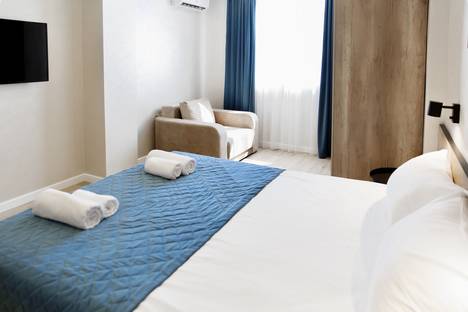 Просторный номер с современным дизайном, мягким освещением и свежим ремонтом создаёт атмосферу спокойствия и отдыха.