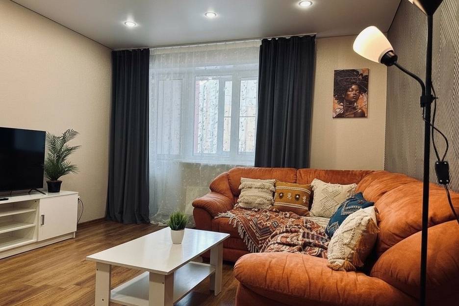В 26 микрорайоне, по адресу улица Теперика, дом 1, предлагается просторная двухкомнатная квартира. Она полностью обставлена мебелью, включая четыре отдельных спальных места: кровать, диван и два кресла-кровати. В квартире есть Wi-Fi, два балкона, а также вся необходимая посуда для приготовления пищи, средства гигиены, постельное белье и прочие принадлежности. Кроме того, в наличии два телевизора, один из которых смарт-ТВ.