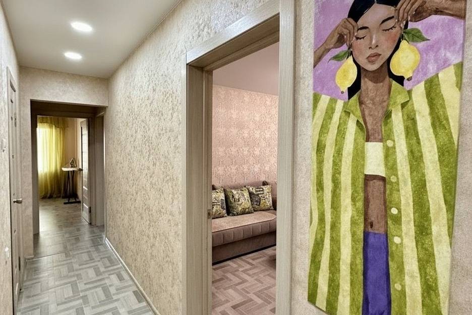 В новом кирпичном доме в самом центре города предлагается просторная и комфортабельная трёхкомнатная квартира. В ней выполнен современный ремонт, установлена удобная мебель: двухспальная кровать, четыре дивана, смарт-телевизор в зале, тв в спальне и на кухне,кондиционер, стиральная машина, микроволновая печь, фен и утюг.Есть уютный балкончик.