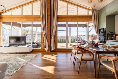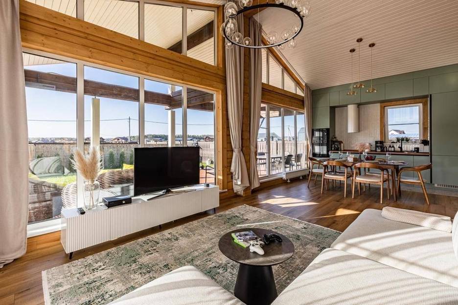 Современный стильный дом из бруса. Greenwood-2 расположен в часе езды от Москвы по симферопольскому шоссе или трассе М-4 Дон. Подарите себе потрясающий отдых в доме с панорамными окнами. ✅Самостоятельное заселение, с помощью key box. ✅Бронирование на сутки, при наличие мест, обговаривается отдельно. ✅Обращаем Ваше внимание, что к стоимости бронирования добавится оплата за уборку, 4500 р. Стоимость аренды в праздничные дни и в выходные отличаются. Максимальное количество до 8 человек. Цена указана за 2-х гостей. Дополнительные гости оплачиваются отдельно. Раннее заселение и поздний выезд по возможности, за дополнительную плату. Заезд с 16:00 Выезд до 12:00. Собачки от 1000 р. Семейства кошачьих нельзя! Мы сделали все для того, что бы Ваш отдых был уютным и приятным. ❎К Вашим услугам для комфортного проживания в доме: 2 спальни, с ортопедическим матрасом 160*200. Отдельно детская комната с 2 мя полноценными полуторными кроватями. Есть кроватка манеж и стульчик, цену можно узнать у менеджера. Просторная Кухня с большим обеденным столом со всей необходимой техникой и посудой. (Духовой шкаф, варочная индукционная плита, тостер, холодильник, чайник, посудомоечная машинка, СВЧ, кофеварка). Колонка Алиса, икс бокс-игровая приставка и телевизор. В кухонной зоне есть большой диван, с полноценным спальным местом 160*200. Из кухни выход на большую террасу с удобной летней мебелью. В доме два сан узла, (есть Ванная комната и душевая) стиральная машинка, для Вас есть белоснежные банные полотенца, шампунь, кондиционер и зубные наборы. Так же есть одноразовые тапочки. Парковка на два места. Розжиг, дрова, угли и решетку мы не предоставляем. Есть мангальная зона и шампура. ❎Возвратный залог 10000, возвращается при отсутствии ушерба и нарушения правил проживания договора, возврат залоговой суммы в течение трех суток. Курение в доме и на террасе сигарет, кальянов Вейпов и ай коса запрещено ❗️Шумные вечеринки не допускаются. ❗️Режим тишины с 22:00 до 09:00. ❗️Ходить по дому в обуви запрещено. ❗️Возраст гостей для бронирования от 23 лет. ❗️Во время проживания в доме могут находиться только те гости, которые внесены в бронь. ❗️На территории участка запрещено использование пиротехники и бенгальских огней. 🟢В поселке есть для Вас: ️Озеро с зоной отдыха, лежаками с шикарным пляжем и белоснежным песочным берегом. ✅Родник с чистейшей водой. ✅Детская и спортивная площадка. ✅Теннисный корт. ✅10 минут на автомобиле можно доехать до аптеки, Дикси, овощные и фруктовые палатки, цветы, и Wildberries. 🟡Доставки: Озон, ВкусВилл, Сбермаркет, Перекресток, Пятерочка из ближайших ресторанов, суши, роллы пицца. ✅В 10 минутах езды Банный SPA-комплекс Green Club Family с бассейном, баней, рестораном и летним кафе. Конный клуб-Грин хорс, с катанием на лошадях. ✅В 40 минутах езды Приокско-террасный заповедник. ✅В 30 минутах езды находится Монастырь Давидова Пустынь. ✅В 40 минутах езды Страусиная ферма. Предоплата не возвращается при отмене бронирования менее чем за 14 дней до даты заезда. 🟡Сохраните в избранное, что бы не потерять. Обязательно приезжайте на отдых всей семьей. Ждём Вас в гости ♥️