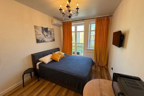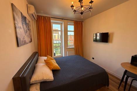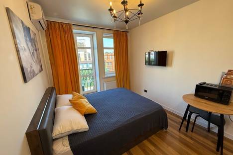 Уютная студия со свежим дизайнерским ремонтом в элитном жилом комплексе Ярославля. Дом расположен в центре города.