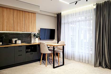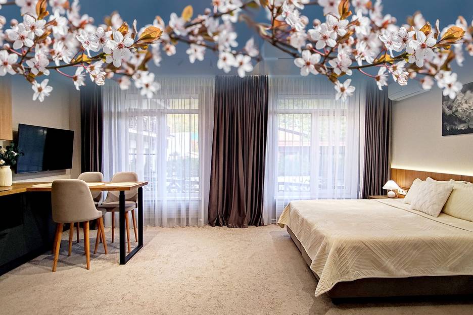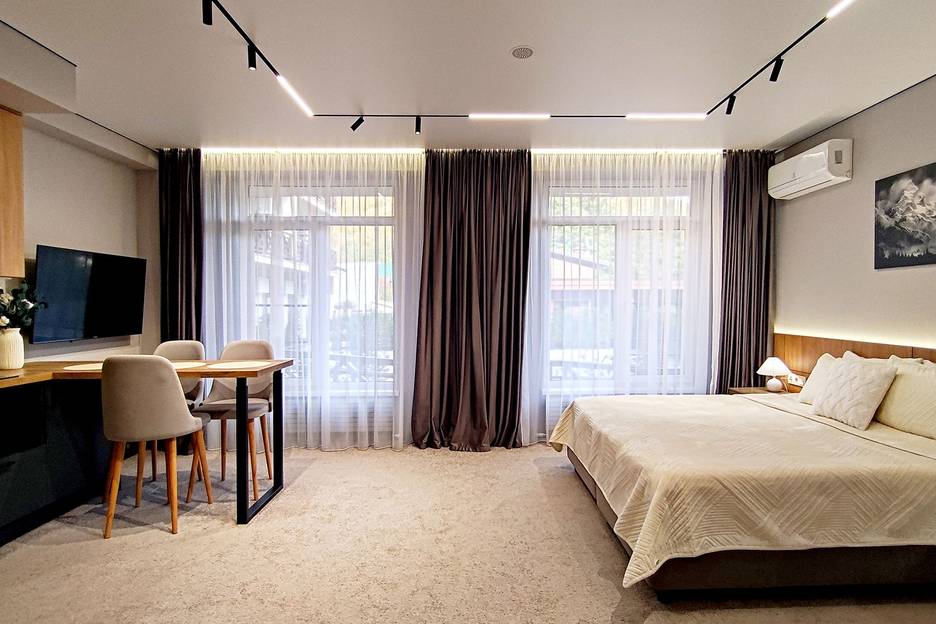 Персональный рассвет и живописные горные пейзажи уже ждут вас. Просторная и уютная студия, наполненной теплом и вниманием к деталям. Через огромные панорамные окна открывается захватывающий вид на природу, вдохновляющий каждое утро.