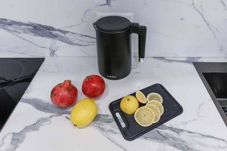 полностью оборудованная кухня, микроволновка, плита, холодильник, чайник.