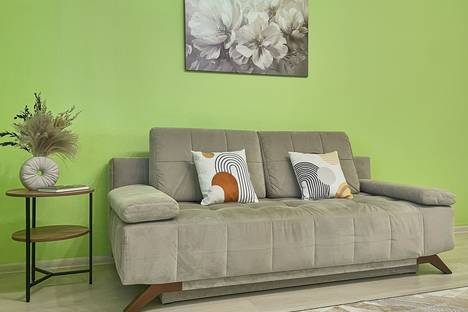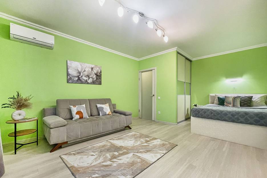 Здесь легко расслабиться после насыщенного дня: заварите чай на светлой кухне с зелёными акцентами, устройтесь на диване или в удобной кровати и почувствуйте себя как дома уже через несколько минут после заселения.