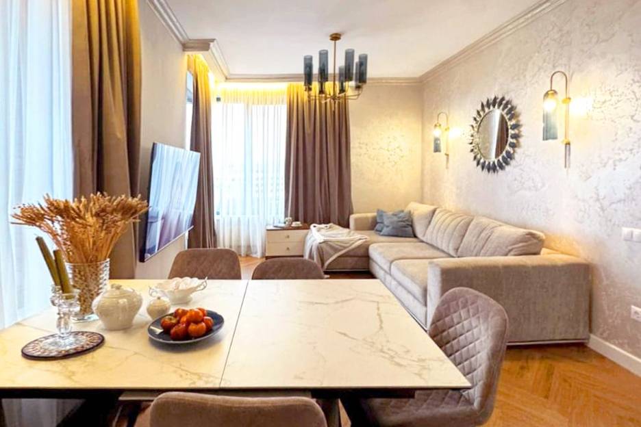 ● оборудованная кухня с индукционной плитой, холодильником, микроволновкой, посудомоечной машиной и электрическим чайником;