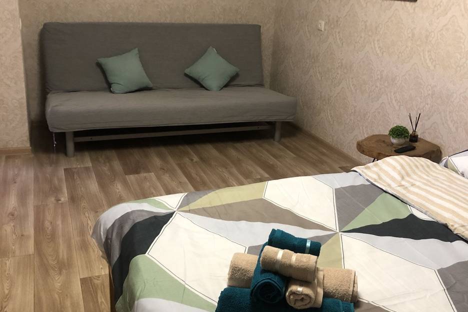 Квартира на 1м этаже, кровать 160/200 и диван 140/200. Уютная кухня со всем необходимым, чай, кофе, сахар, приправы и вся необходимая посуда. . Постельное, полотенца и т.д. Все готово к вашему заезду)