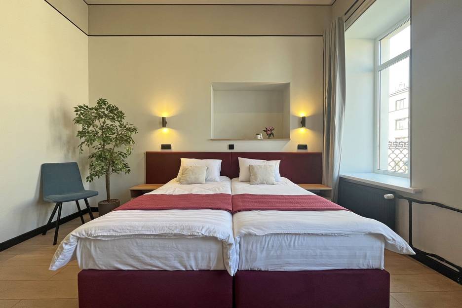 Вид из окон номеров открывается на Невский проспект Петербургский двор.