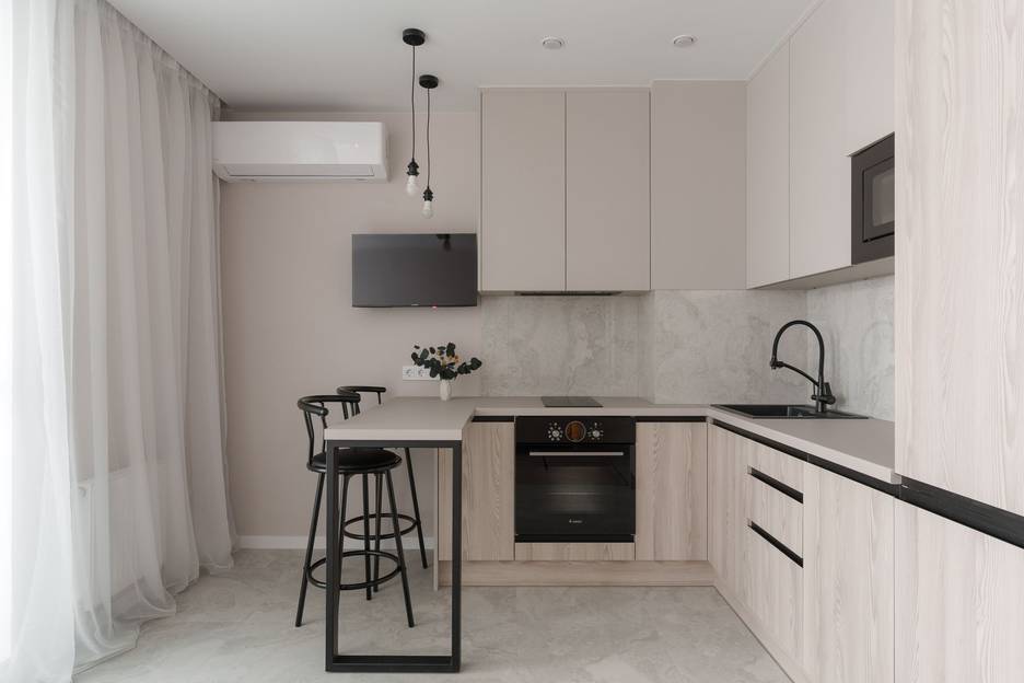 Техника: wi-fi router, посудомоечная машина, микроволновая печь, электрочайник, электроплита, духовой шкаф, холодильник, кондиционер, стиральная машина, телевизор со smart TV, гладильная доска, утюг, пылесос, фен для волос.