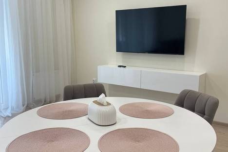 В квартире есть всё для комфортного проживания: кухня со всей необходимой техникой и посудой, холодильник, духовой шкаф, посудомоечная и стиральная машина с капсулами, телевизор 55 дюймов, Android TV, Wi-Fi, интернет, чайник, утюг, гладильная доска, полотенца, постельное белье.