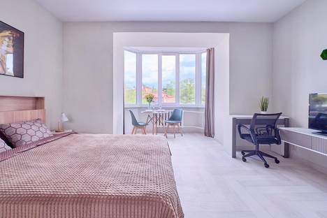 Апартаменты находятся в замечательном месте, с окна открывается великолепный вид на город. Студия оснащена необходимой техникой, мебелью, посудой, в уютной комнате 2 спальная кровать. Также есть вся необходимая техника и мебель, кабельное телевидение, высокоскоростной wi-fi. Гостям предоставляется постельное бельё и полотенца.