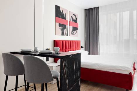 Апартаменты расположены в районе с развитой инфраструктурой. Рядом множество кафе, ресторанов, пекарен, магазинов.
