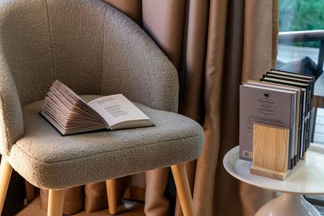 - Виниловый проигрыватель, коллекция книг разной тематики, настольные игры.
