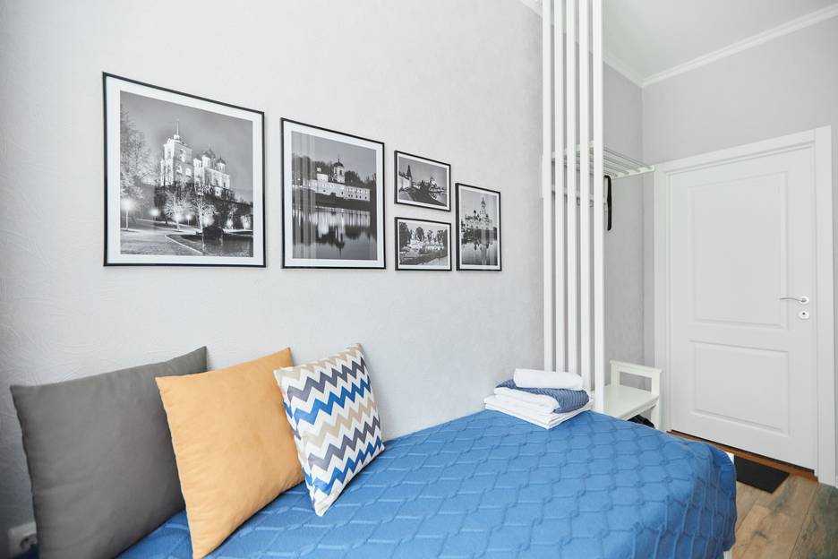 Современная компактная студия. В зоне пешей доступности: прогулочная набережная реки Великой (5 минут), исторический музей «Поганкины палаты» (5 минут), Псковский Кремль (15-20 минут), Мирожский монастырь (15-20 минут), кафе, рестораны, супермаркет.